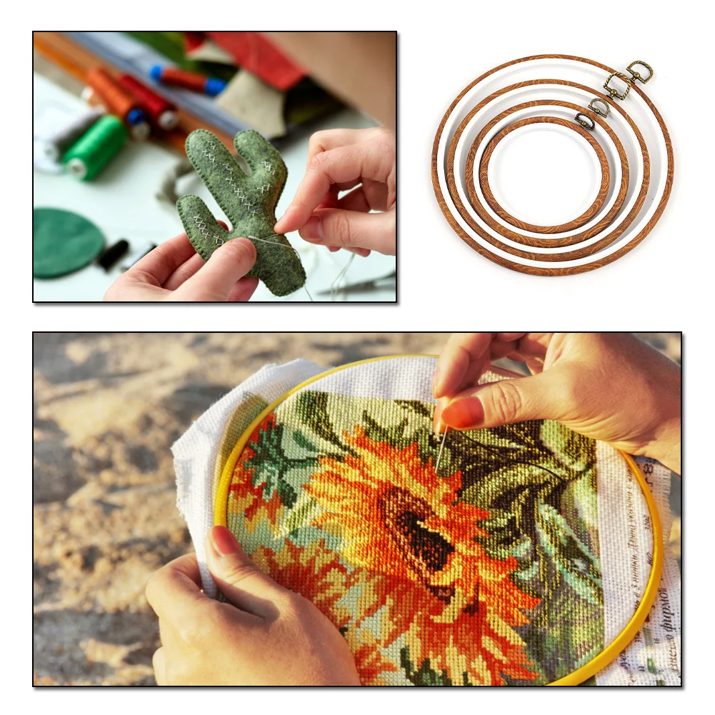 3.Fabric-Friendly Design: With a smooth surface and no sharp edges, the plastic needlework hoop protects your embroidery fabric from damage or wear. This thoughtful design maintains the quality and appearance of your cross-stitch work.