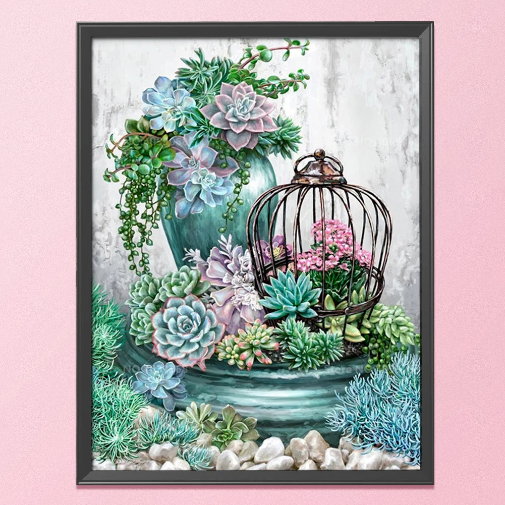 40x50cm Flowers 11CT Stamped Cross Stitch Kits Crafts DMC Cotton Thread Sewing Needlework Embroidery Set Home Living Room Wall Art Decor