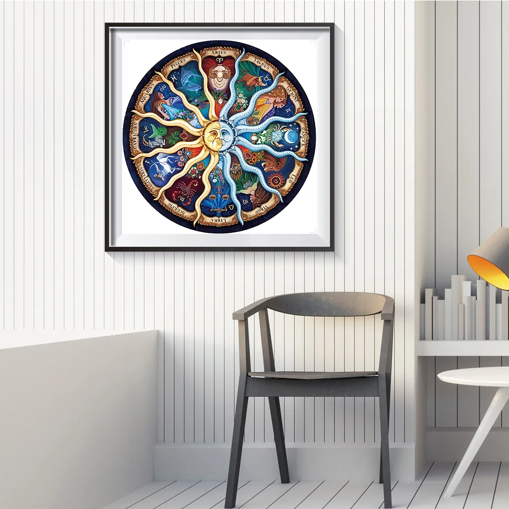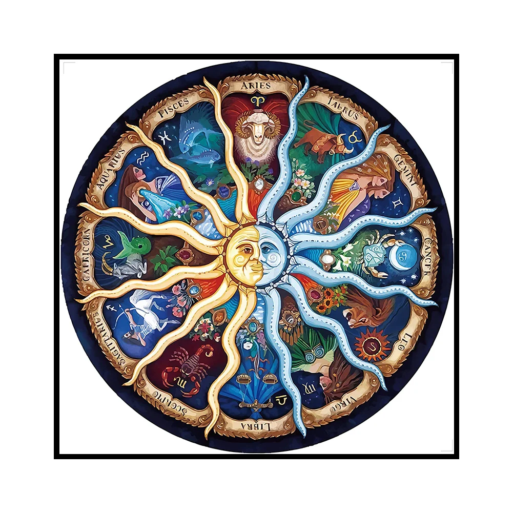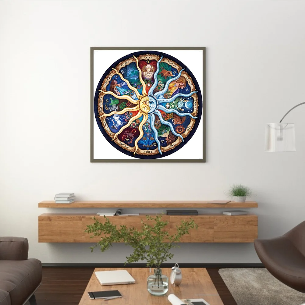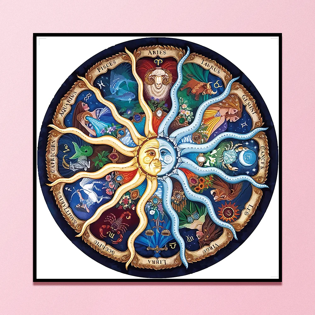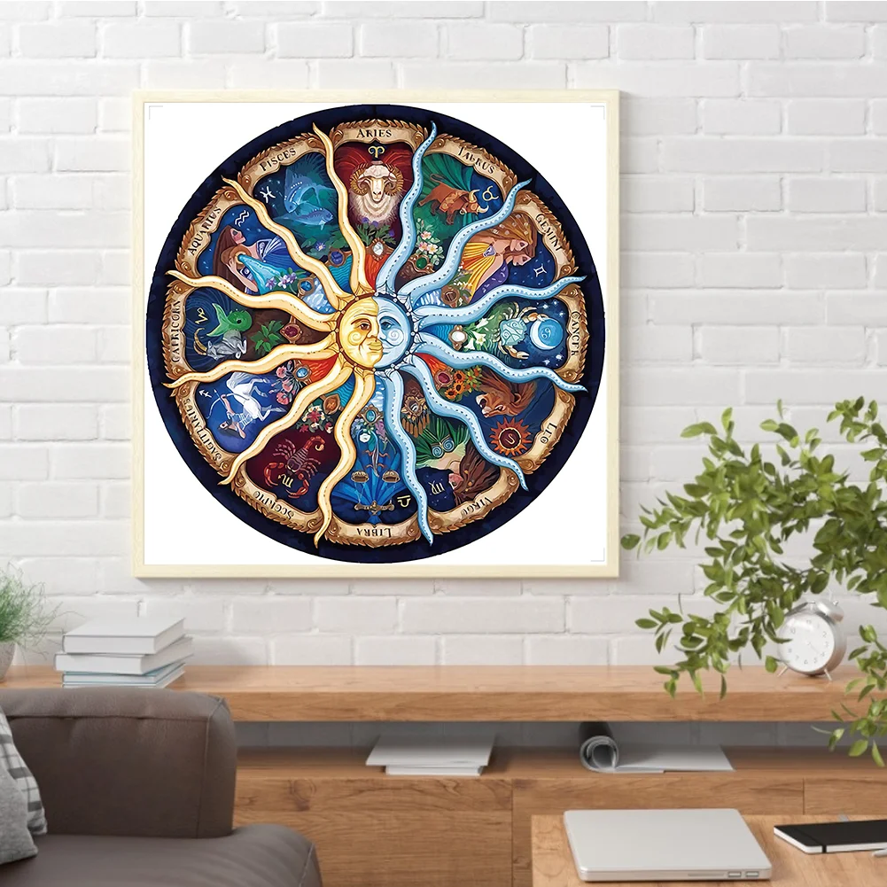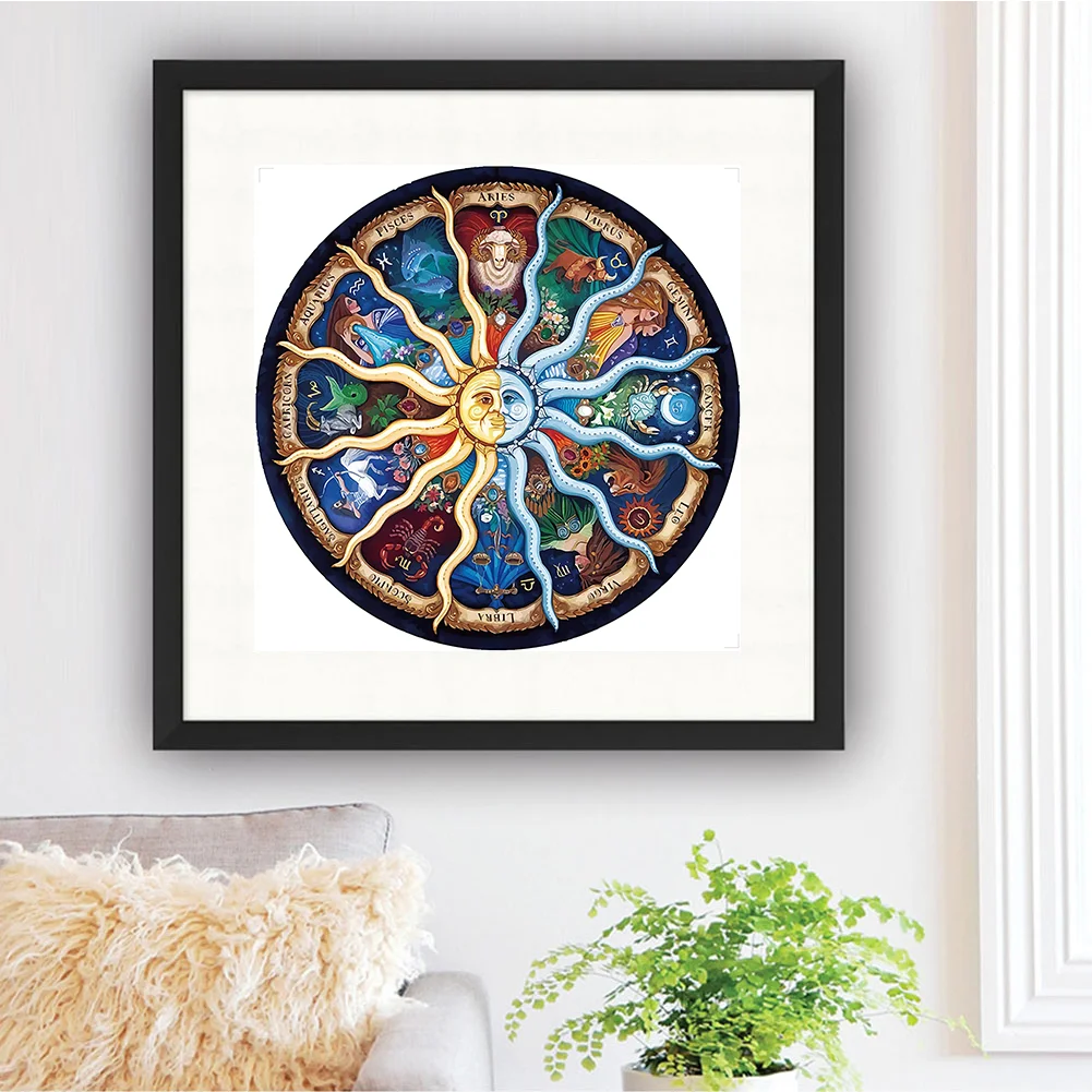 Partial Cross Stitch Sun Moon Constellation Embroidery Cotton Thread DIY Needlework Kits 11CT Stamped Print Canvas Artworks Home Art Gifts Decoration Picture