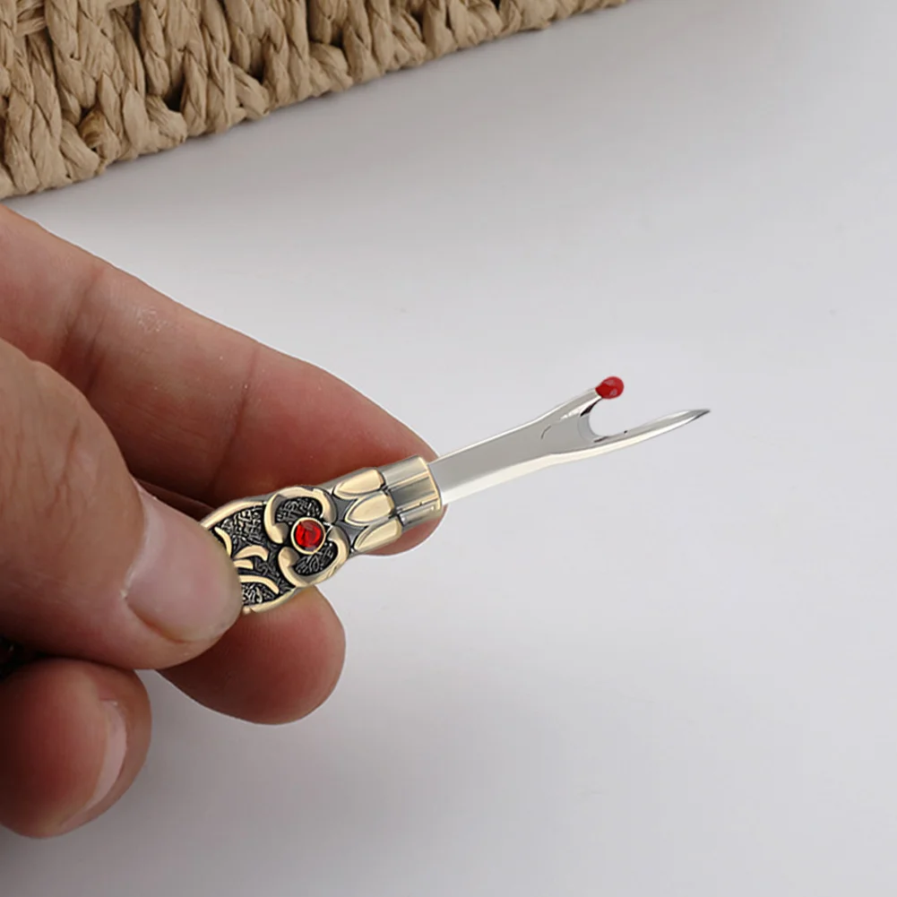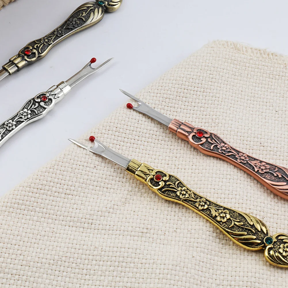 A thread remover is a commonly used hand tool for separating fabrics and sewing threads. It usually consists of a thin, sharp metal head and a grip.