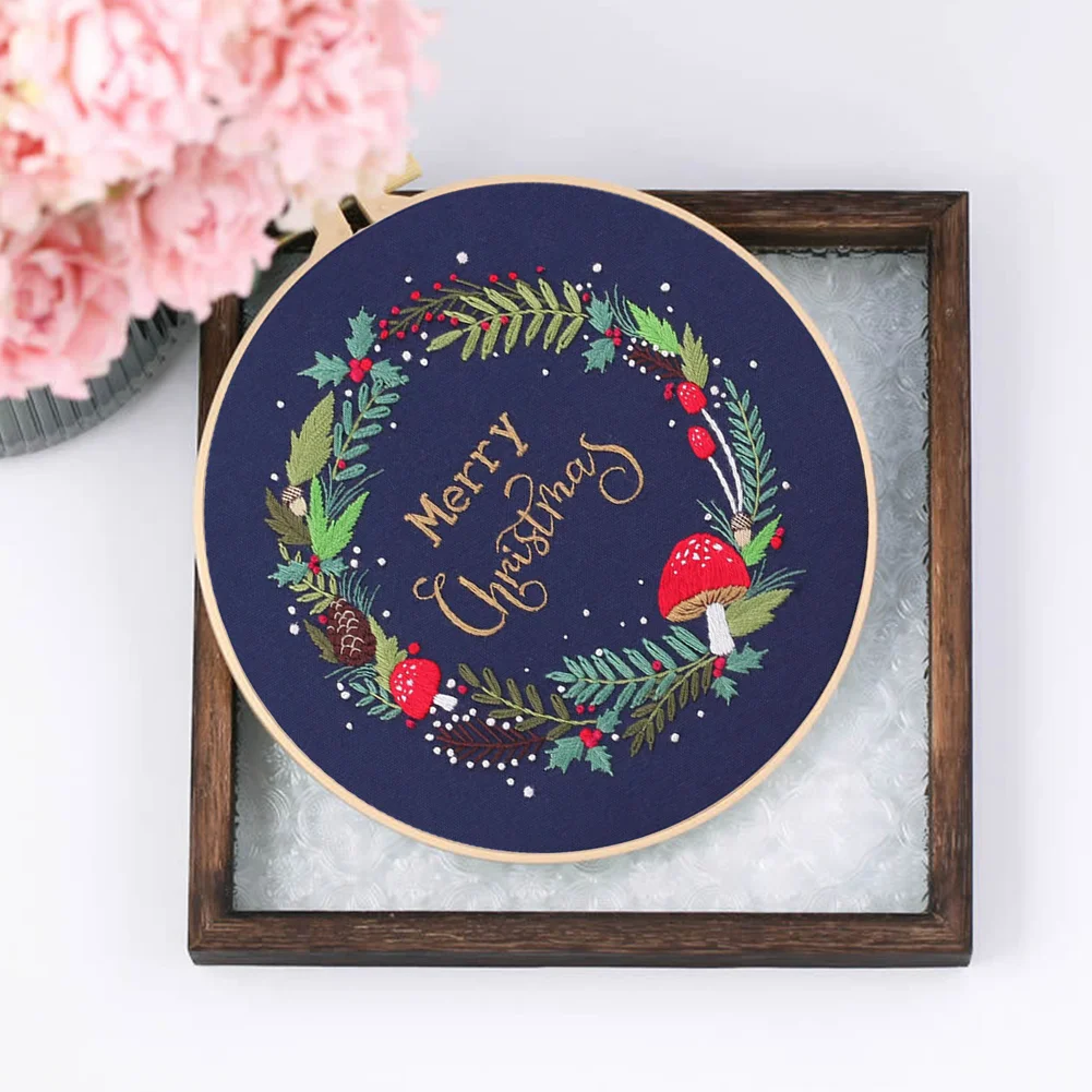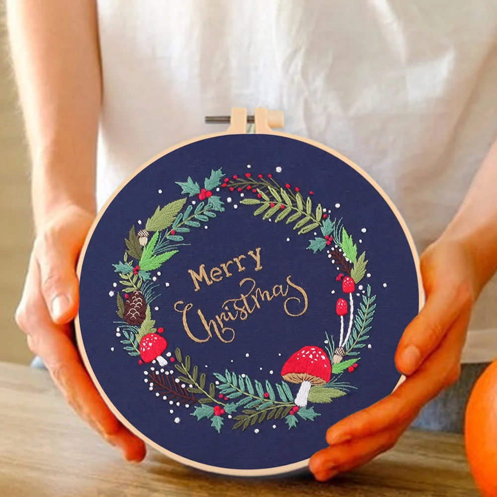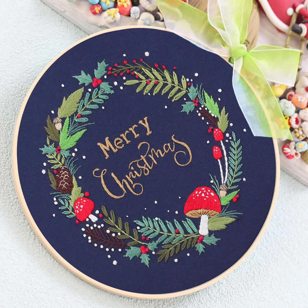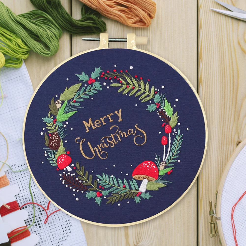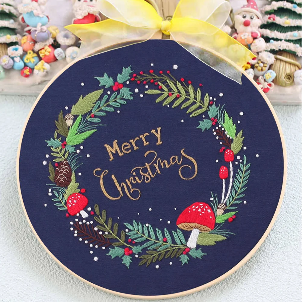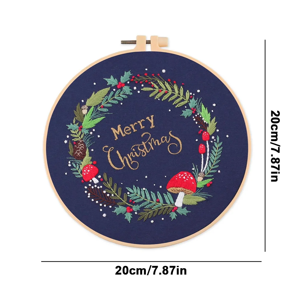 Xmas DIY Embroidery Kit with Pattern Cotton Threads Needles Hoop