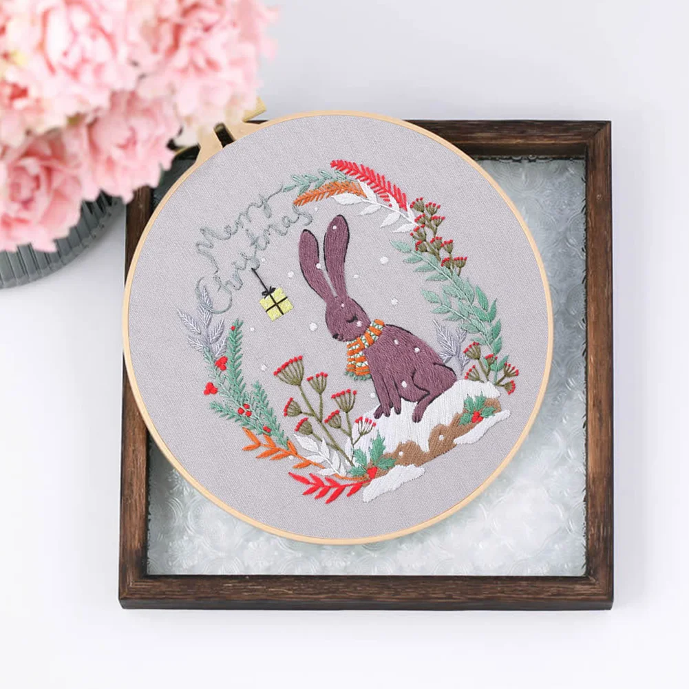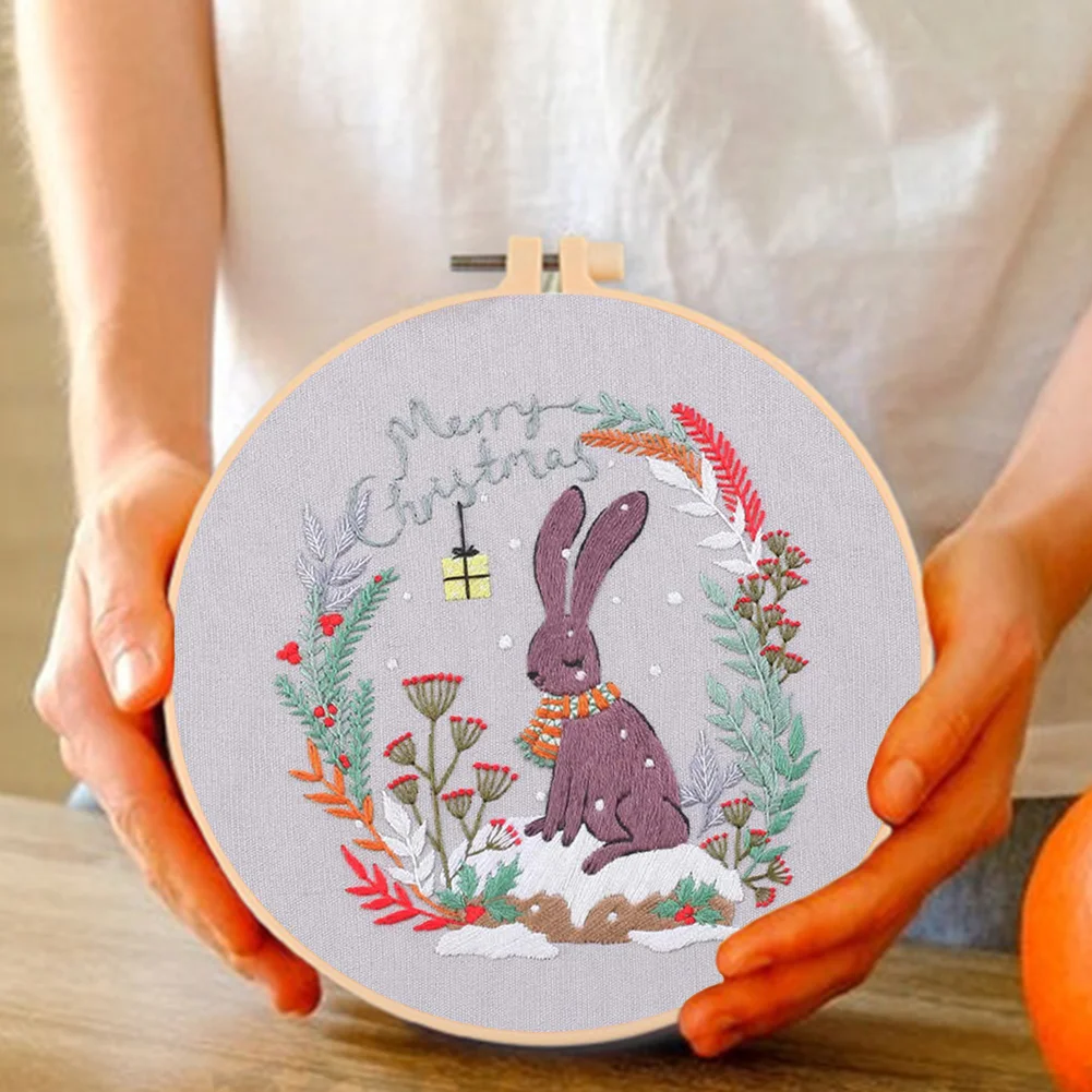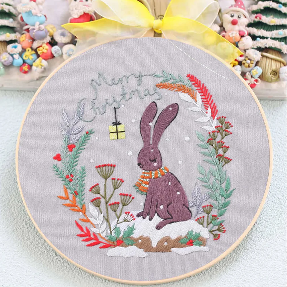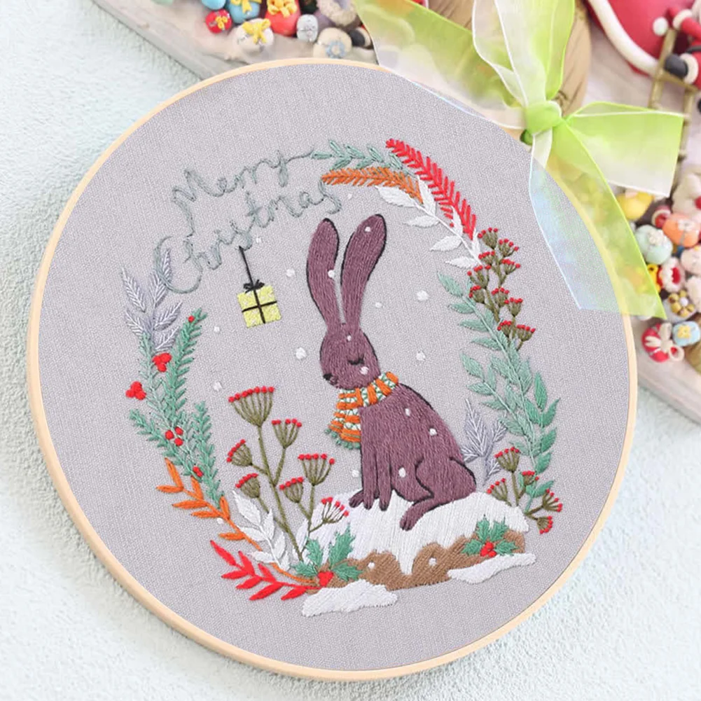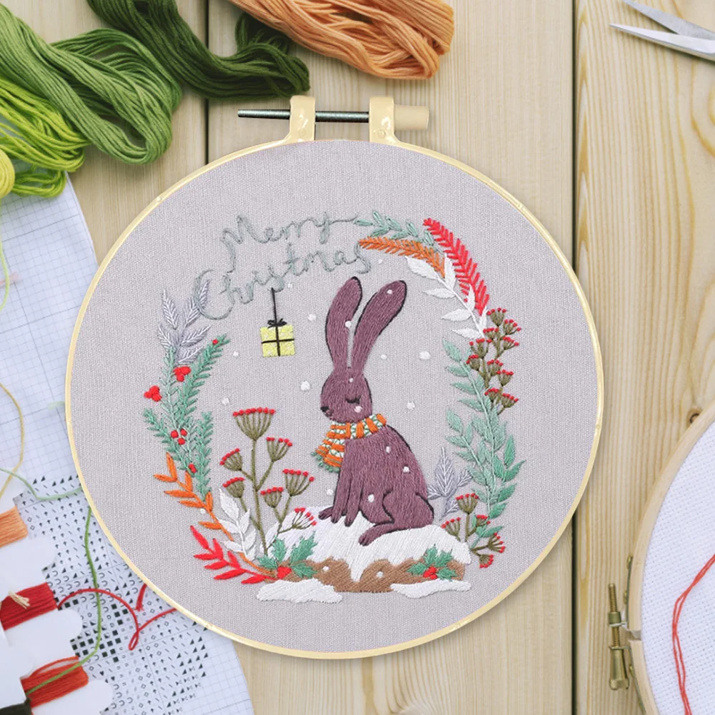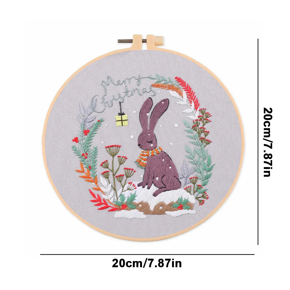 Xmas DIY Embroidery Kit with Pattern Cotton Threads Needles Hoop