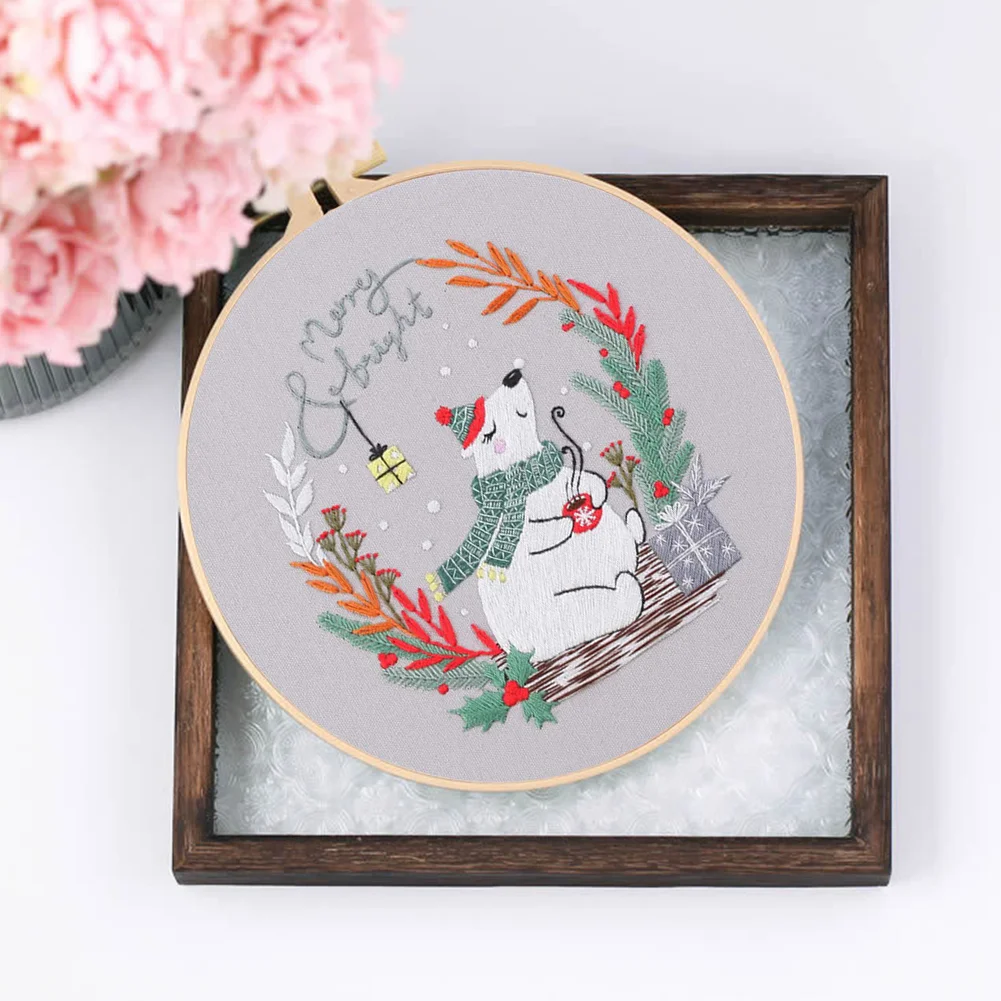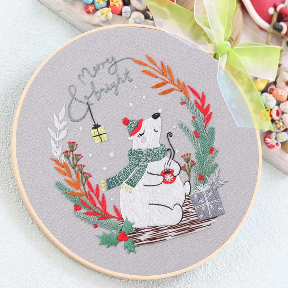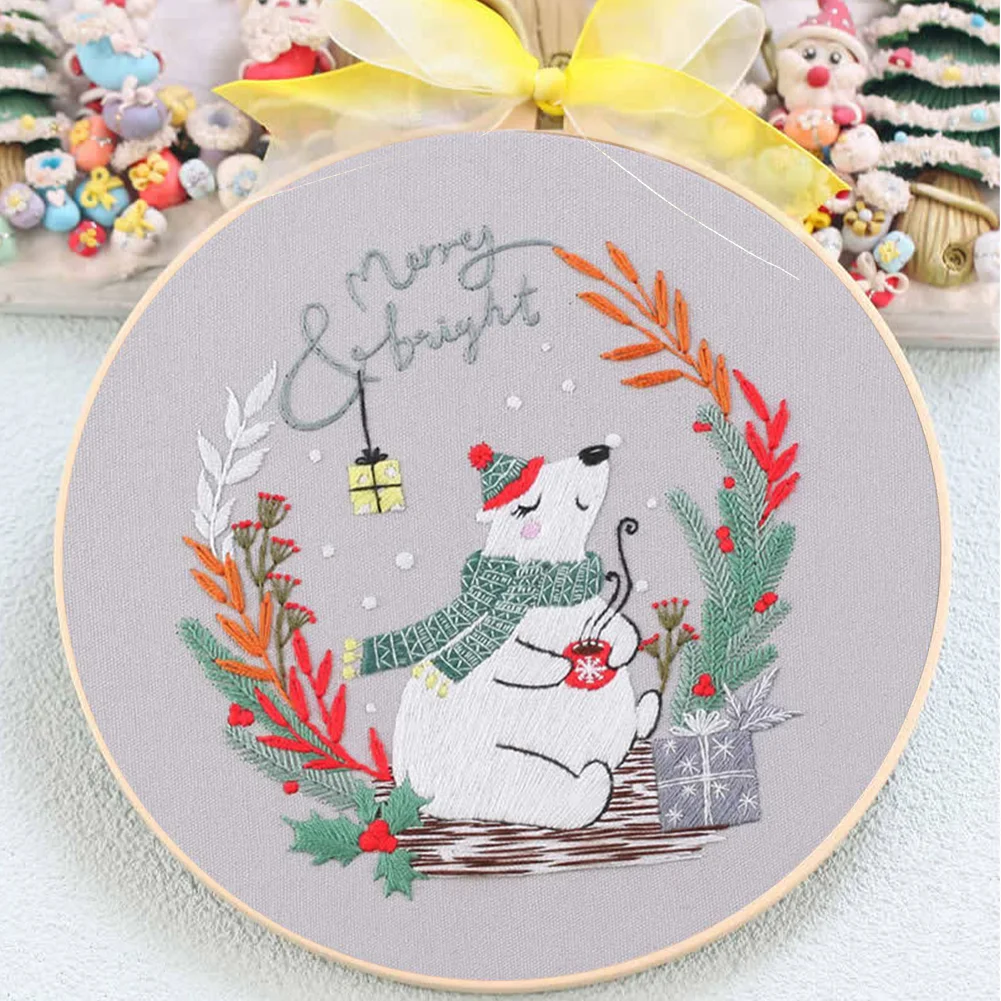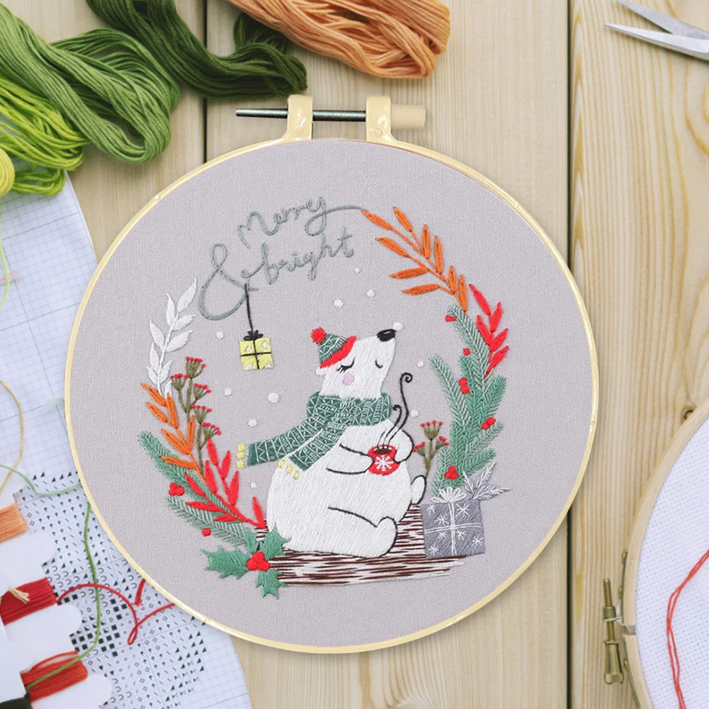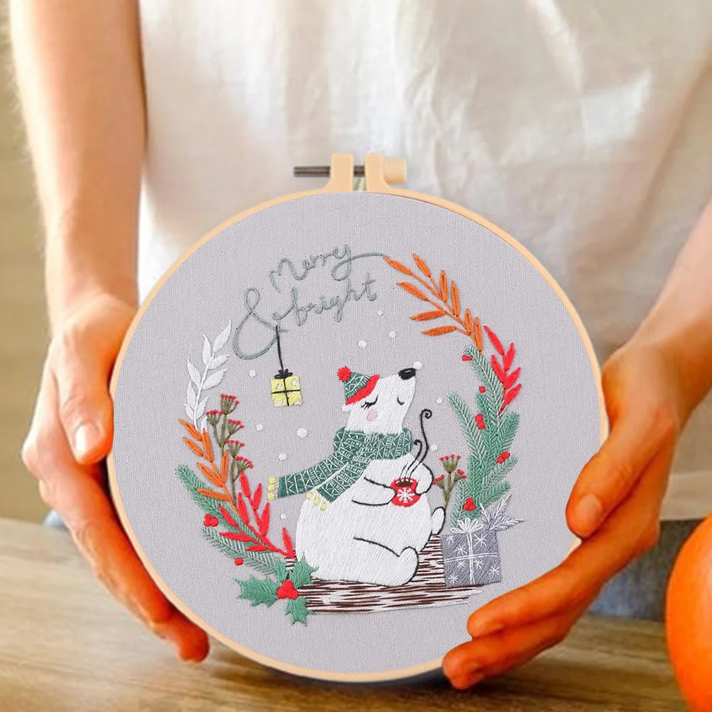 1. Embroidery Starter Kit: Complete set of tools including printed fabric, embroidery thread, embroidery hoop, embroidery needle, and instructions.